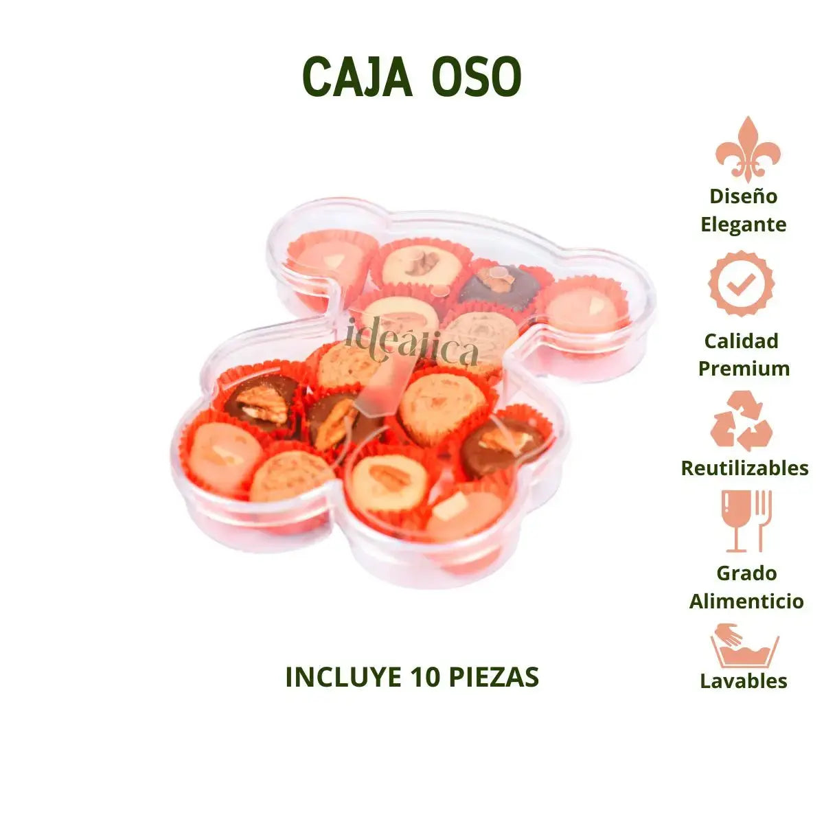 Caja Oso Acrilico Para Postres, Regalo, Recuerdo y Decoracion 10 pzas