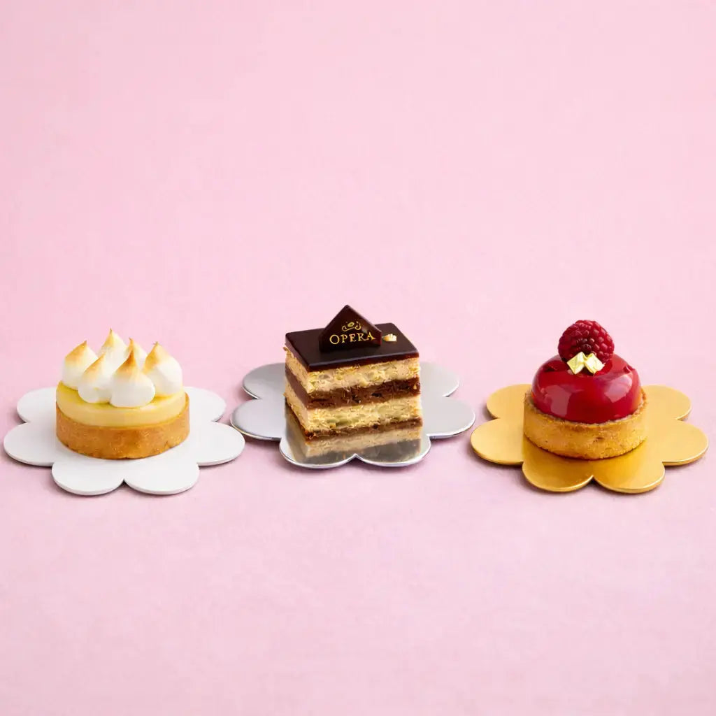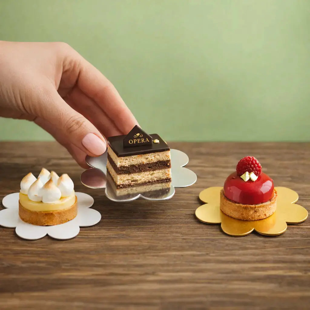 Platito Charolita o Base Flor con Asa de Cartón Laminado para Canapés o Postres Catering.