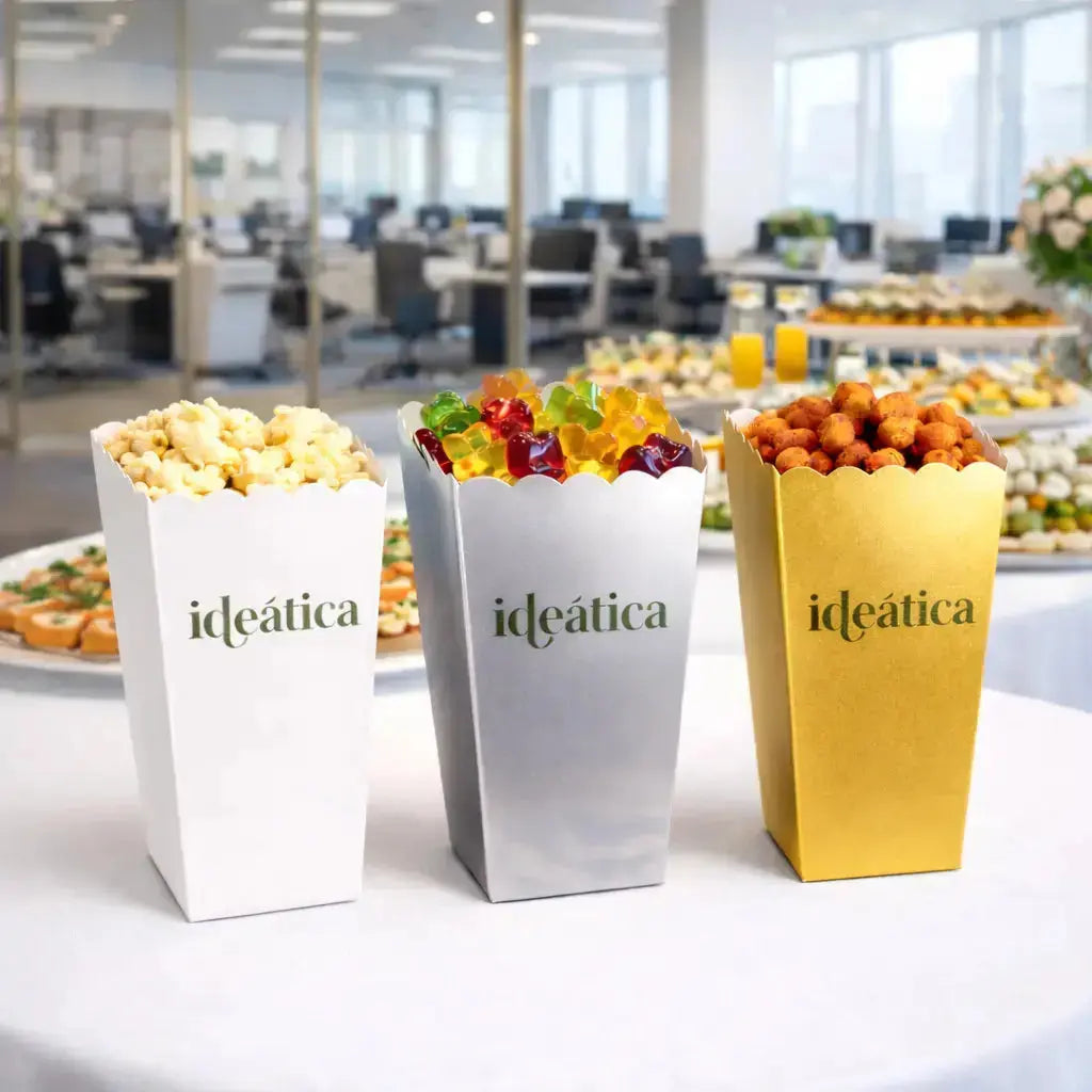 Vaso Caja para Palomitas Dulces de Cartón Laminado Decoración Catering.