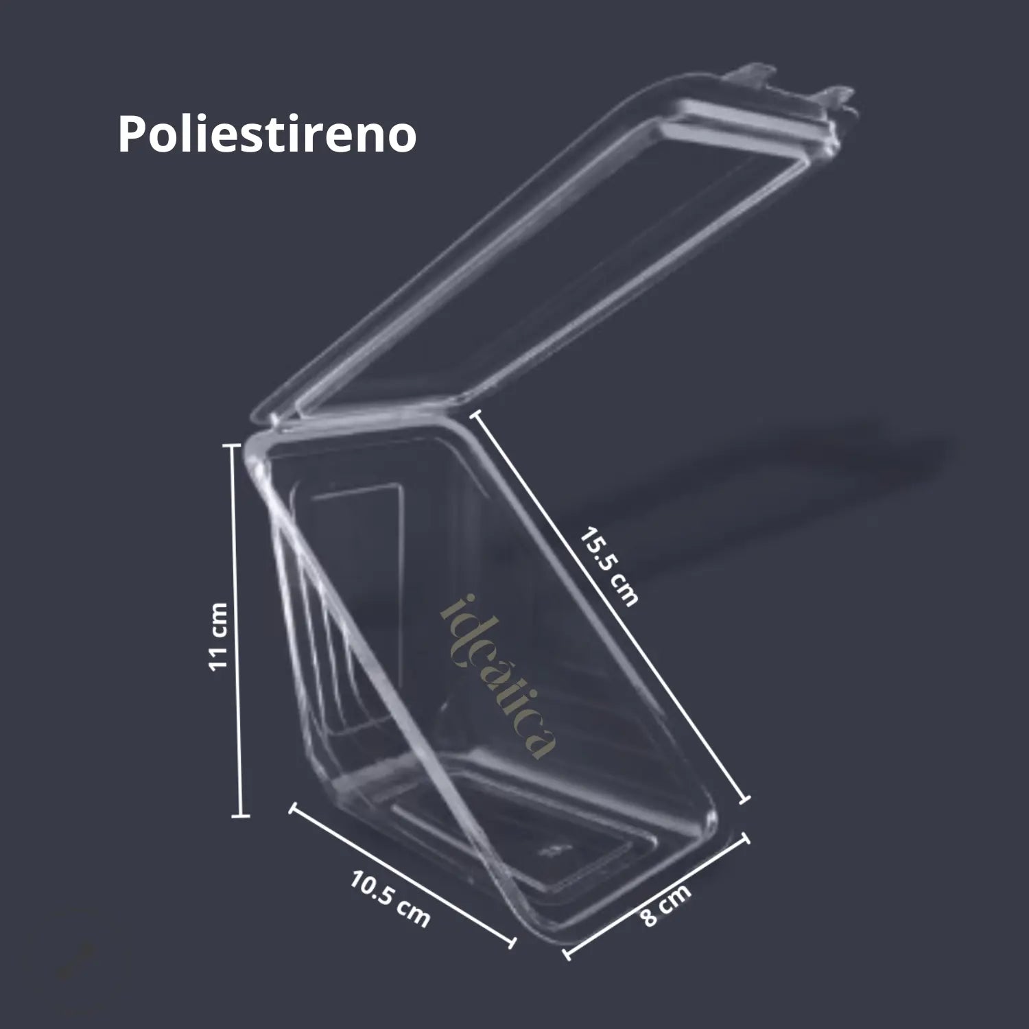 Fabricados con Poliestireno (Un derivado más del Plástico con Propiedades Resistentes, Flexibles y Acabado Fino) y con las siguientes medidas: