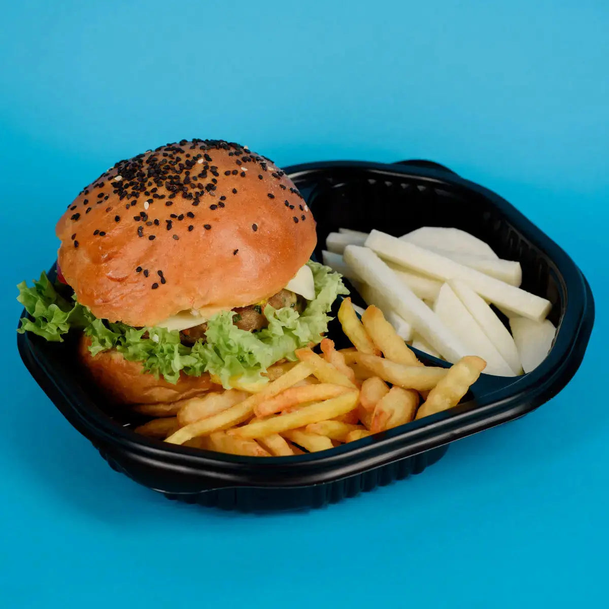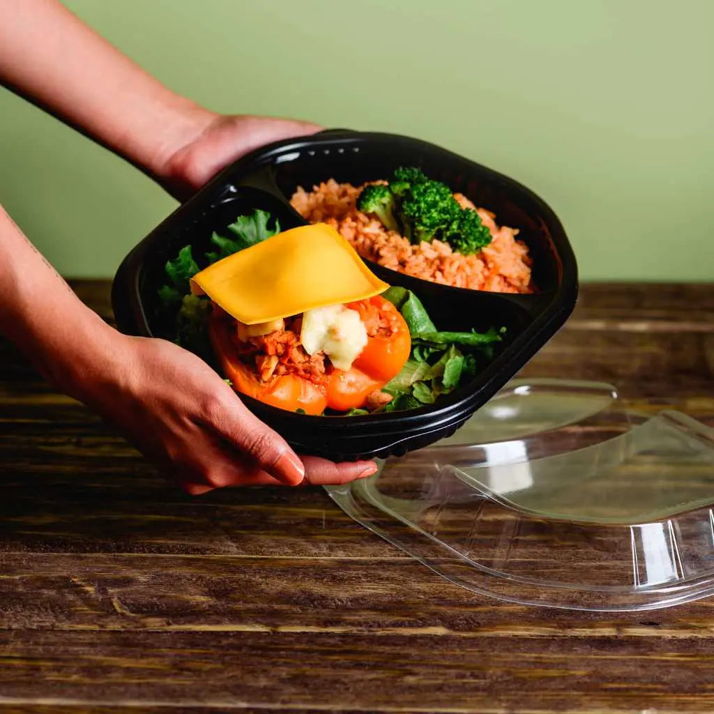Contenedor con Tapa para Alimentos o Comida Plastico 2 Divisiones Ovalado - ( 10 Pzas / 50 Pzas )
