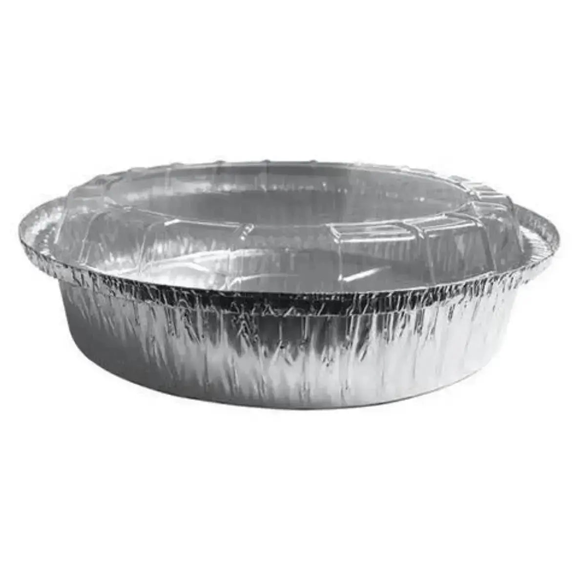 Molde o Contenedor con Tapa para Alimentos, Postres o Comida de Aluminio Plástico Redondo.