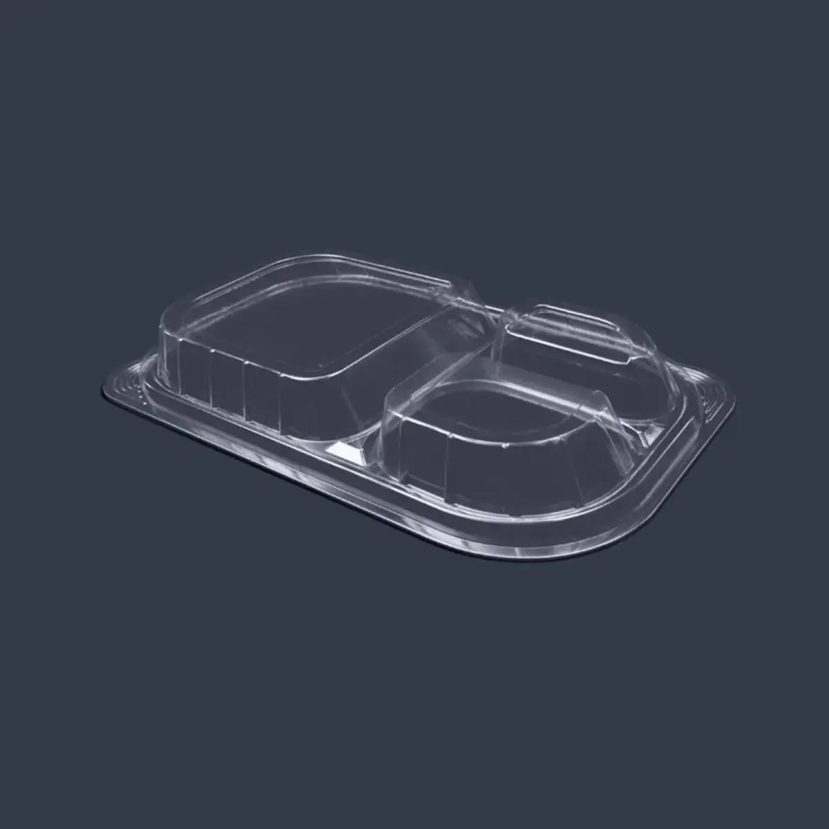 Contenedor con Tapa para Alimentos o Comida Plastico 3 Divisiones Rectangular - ( 10 Pzas / 50 Pzas )
