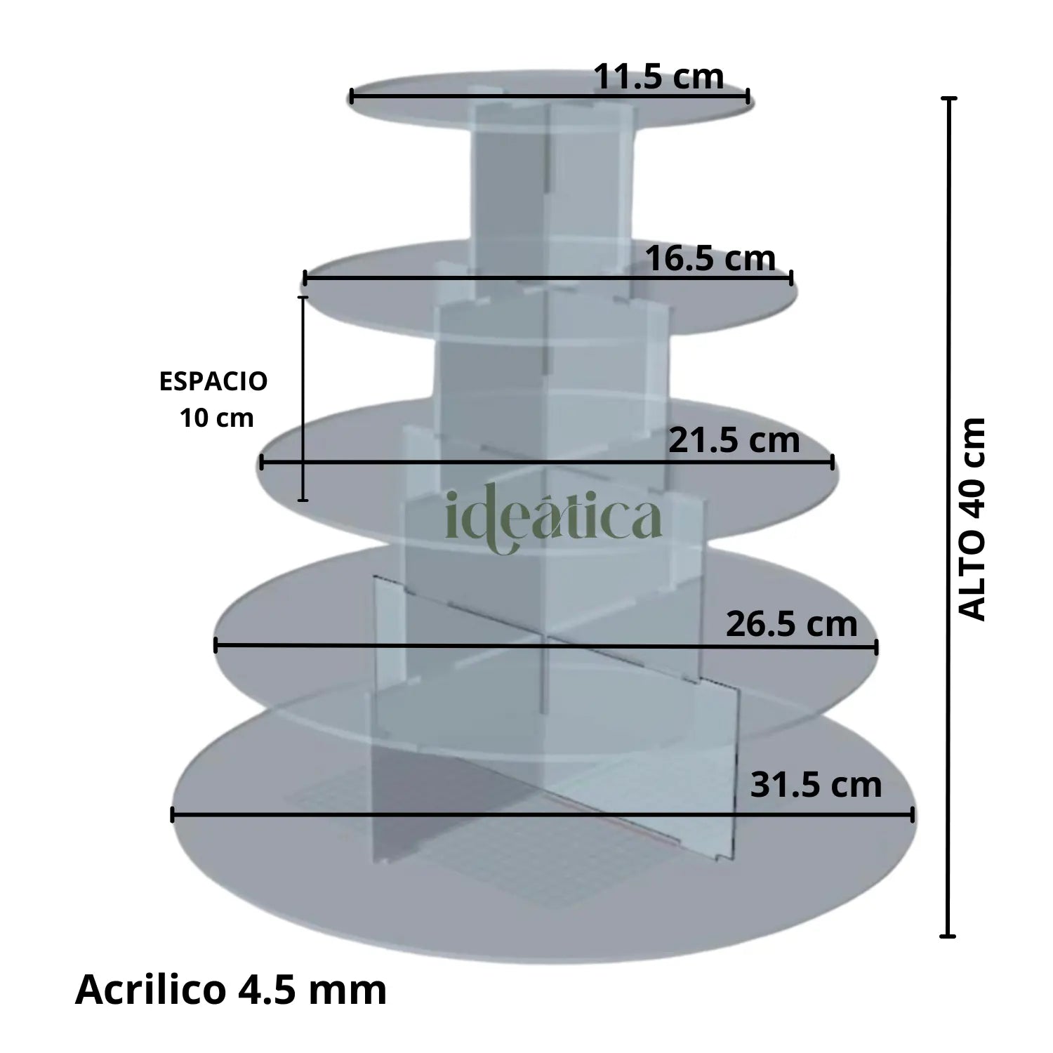 Torre o Base Pequeña para Cupcakes y Postres de Acrilico Catering 5 Niveles